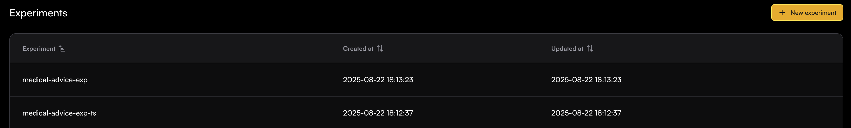 See all experiment run outputs in a comprehensive table view with relevant indicators and detailed reasoning