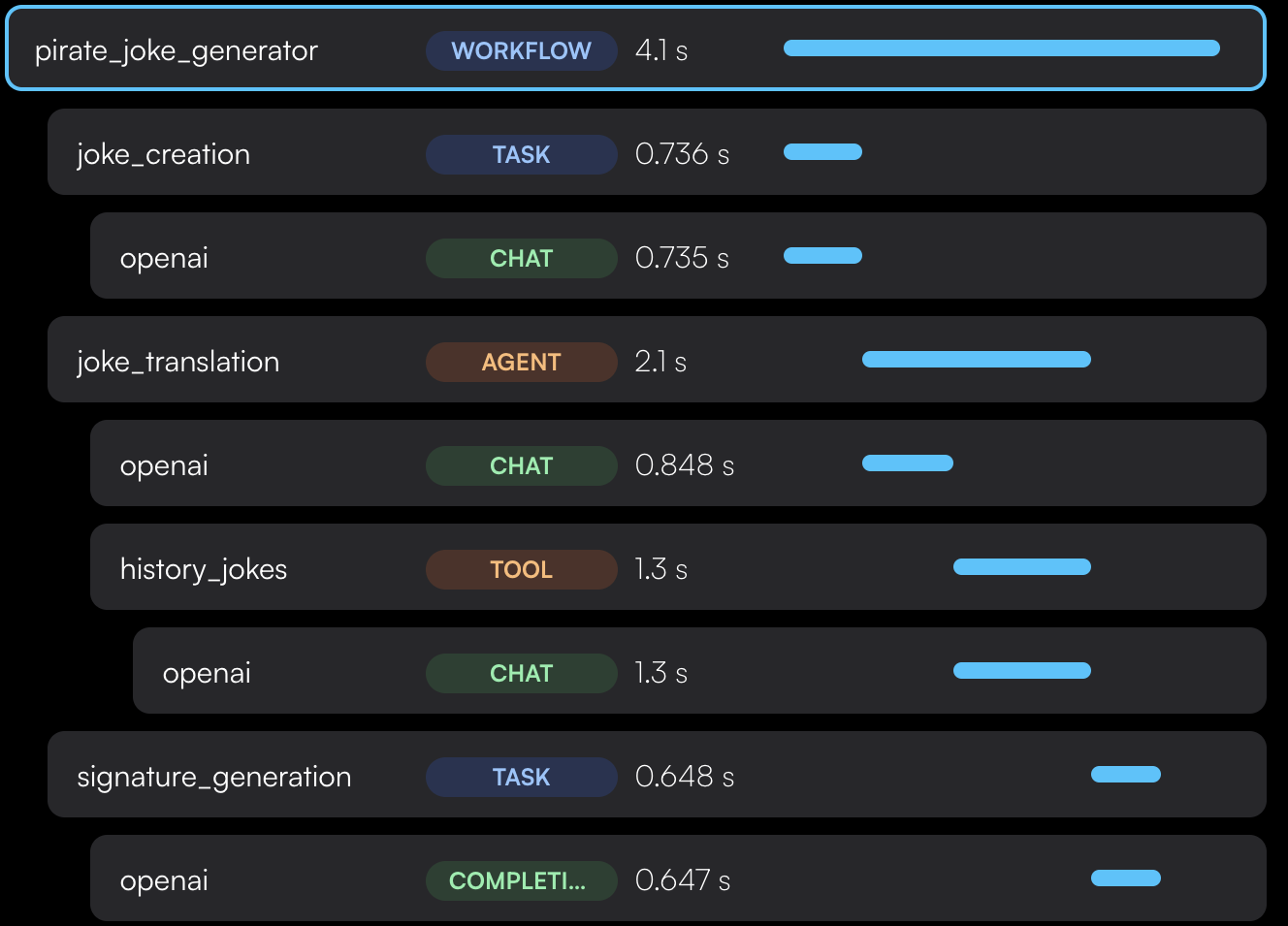TRACELOOP_API_KEY.Done! You’ll get instant visibility into everything that’s happening with your LLM.